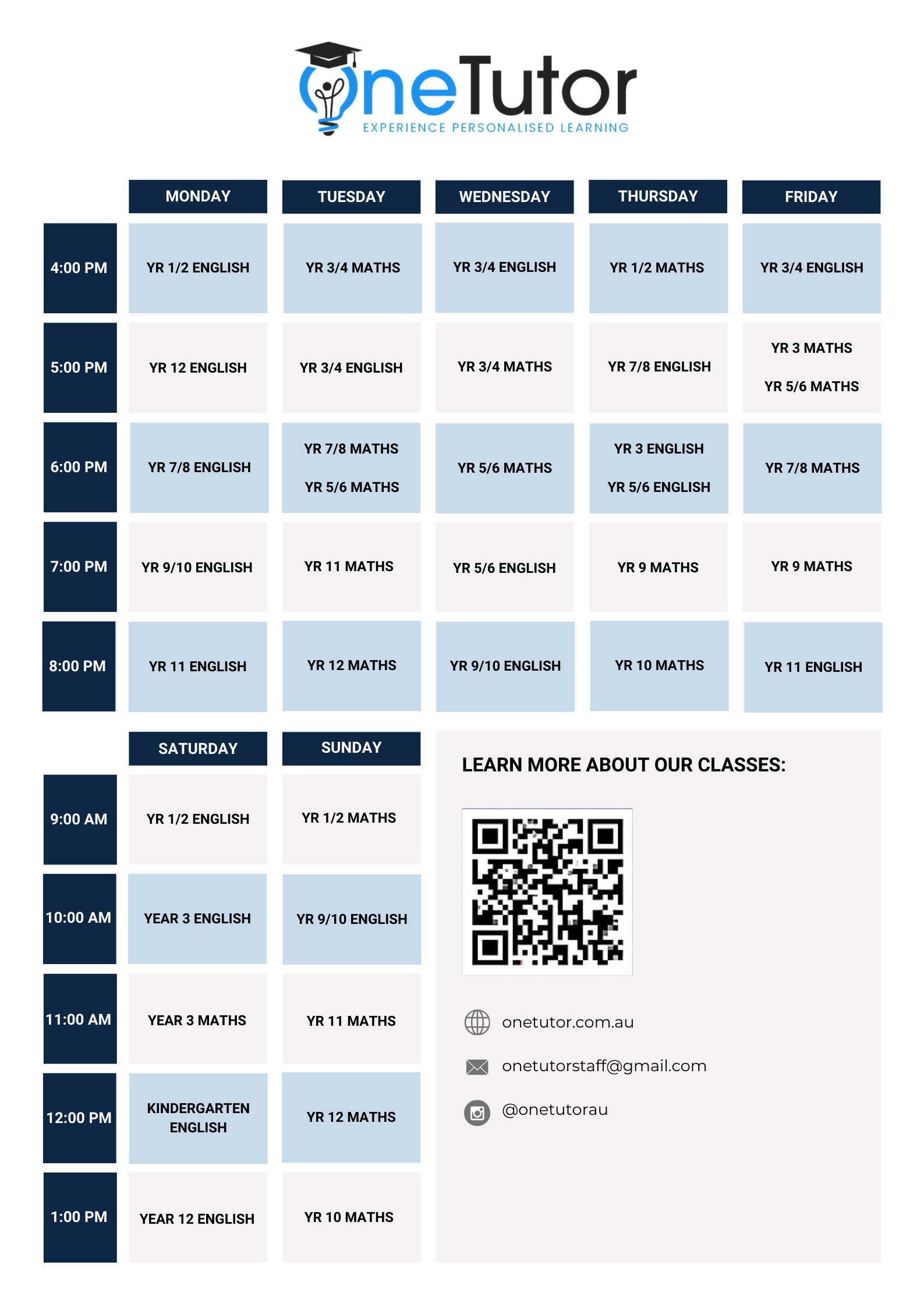 Our Timetable